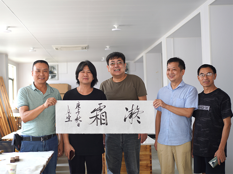 浙江省文化廳新安傳統(tǒng)文化調(diào)研,畫家樓森華、樓秋華和版畫藝術(shù)家王超在公司?;罩蓁ぜ?