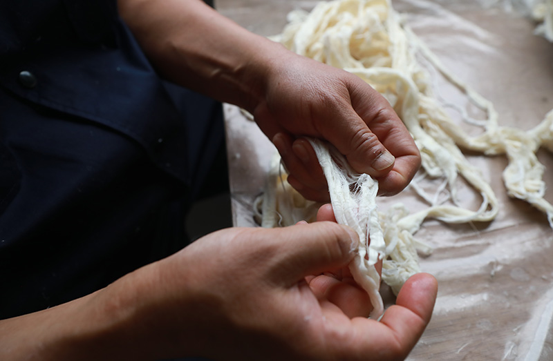 2003年,朱建新在廣泛學(xué)習手工紙制作技藝后,在休寧縣南街(玉寧街117號)建手工紙紙坊,開始恢復(fù)休寧楮皮紙的生產(chǎn)。2016年,因城市改造拆遷,紙廠移至海陽鎮(zhèn)下汶溪村重建,并注冊成立了黃山市凝霜文化發(fā)展有限公司擬建休寧手工皮紙歷史文化展示館、體驗館、紙藝館、美術(shù)館以及藝術(shù)家創(chuàng)作中心,以更好的傳承和發(fā)掘休寧手工造紙的工藝技術(shù),使休寧手工造紙技藝與文化發(fā)揚光大,代代相傳。