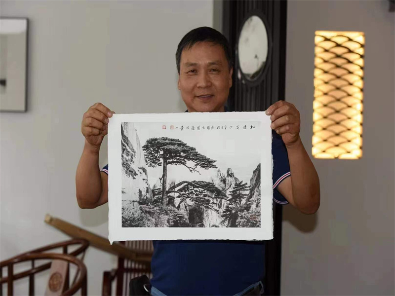 公司總經(jīng)理朱建新應攝影大師程劍邀請參加市文聯(lián)創(chuàng)藝基地授牌,作品是黃山攝影大師拍攝的,由黃山市書法家協(xié)會主席題了字,是攝影作品與書法結(jié)合體現(xiàn)在我們生產(chǎn)的紙上的作品,是非常好的創(chuàng)意